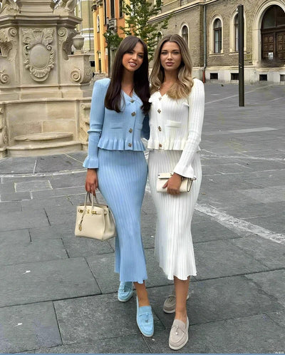 Parisian Grace Ribbed Knit Skirt Set