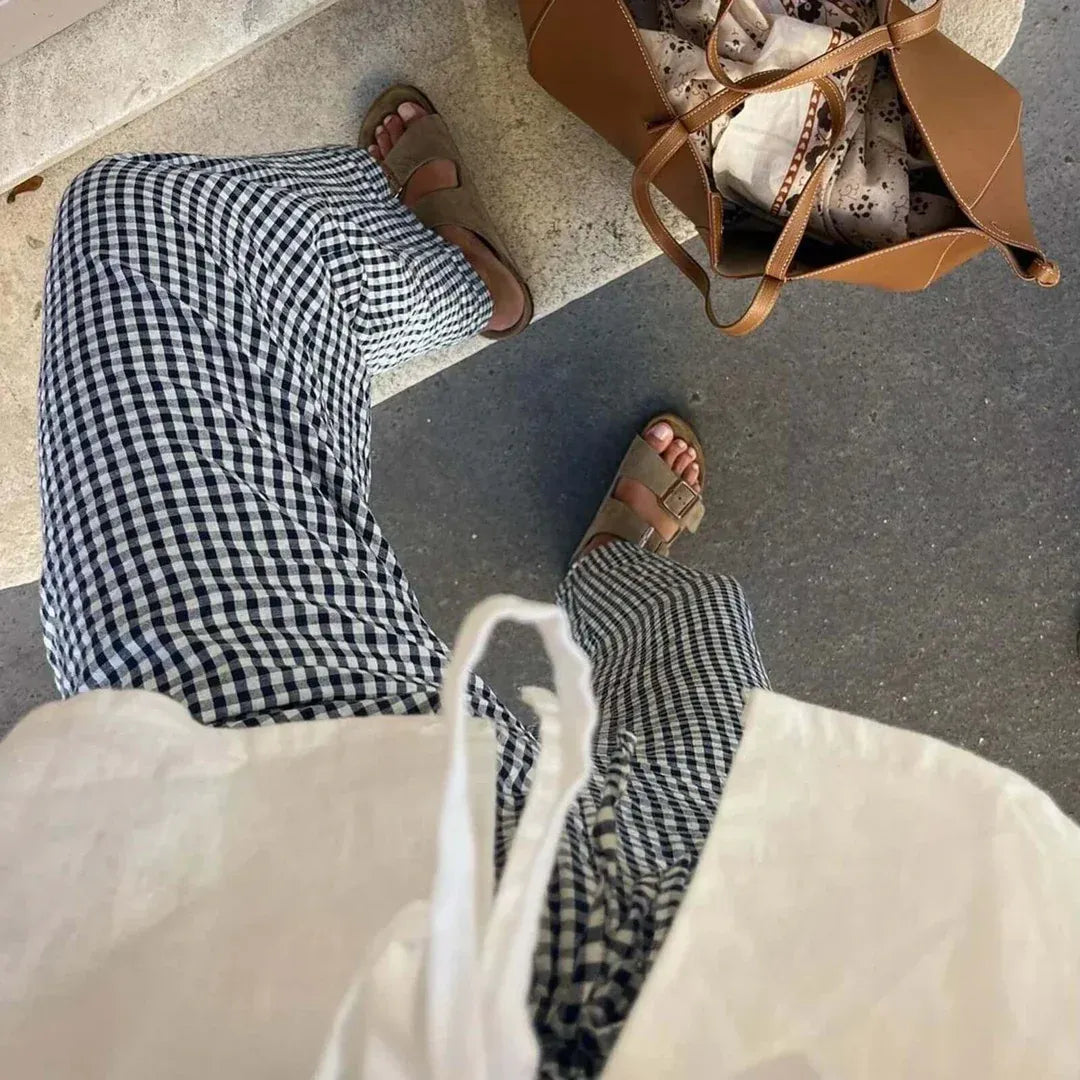 Seaside Charm Gingham Wide-Leg Pants
